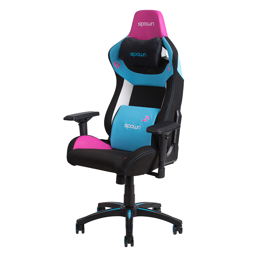 Spawn Neon Edition — neonska energija na ergonomskoj Spawn osnovi. 4D nasloni, 136 kg nosivost, 155° nagib i automotive pena za setup koji sija.