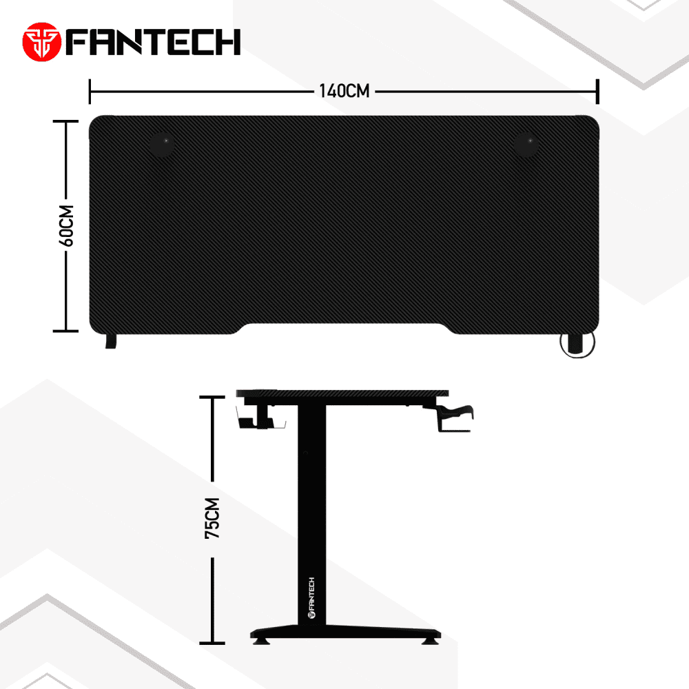 Mat površina sa carbon teksturom odbija otiske i ogrebotine. Dubina od 60 cm drži monitore u idealnoj udaljenosti, dok širina od 140 cm prima ultra-wide, tastaturu i XL podlogu bez gužve.