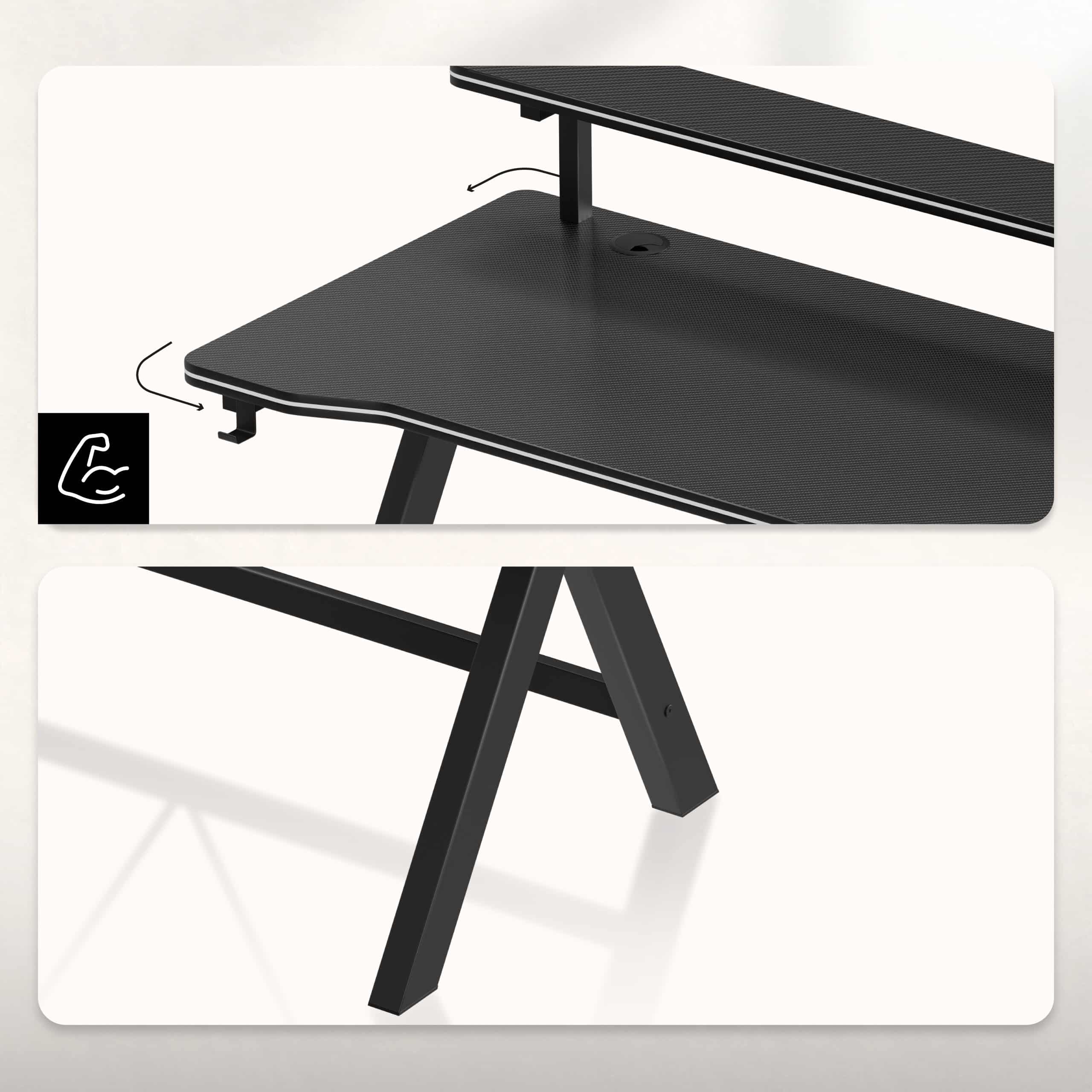 Nadstavka duž cele širine (120 × 14 cm) podiže ekran u prirodnu liniju pogleda i oslobađa prostor ispod za hubove, stream deck ili kontrolere. Ergonomija + dodatna površina = win-win.