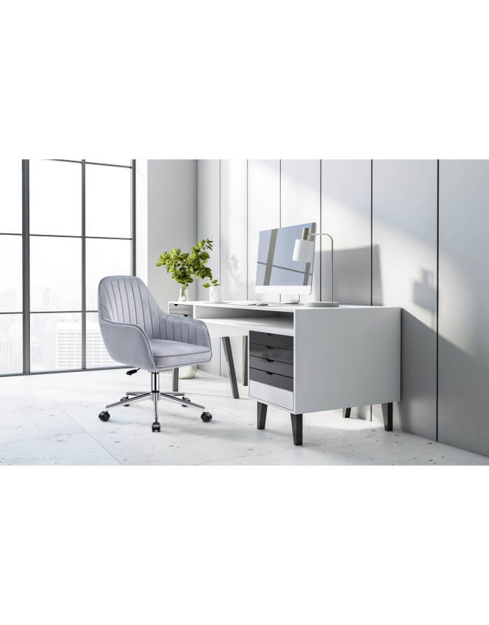 Kombinacija moderne tkanine od velura, oblikovanog tela i hromirane osnove daje eleganciju, obeležava modernost i potvrđuje visok kvalitet. Odgovarajući oblici na sedištu i naslonu obezbeđuju mekoću, a time i maksimalnu udobnost.