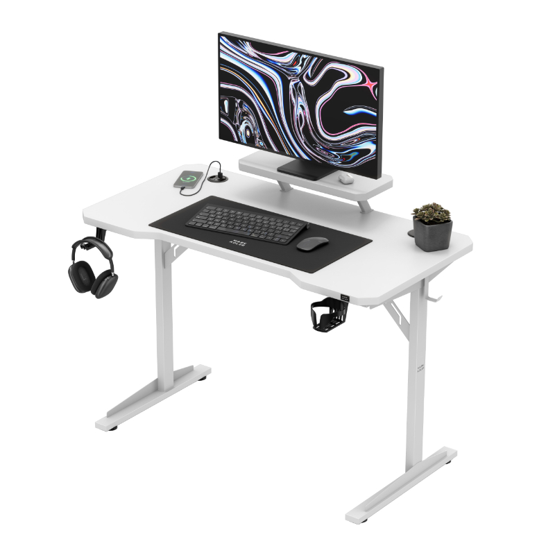 Mark Adler Leader 5.1 je moderan i funkcionalan kompjuterski sto širine 115 cm, dizajniran za maksimalnu organizaciju radnog prostora. Odlikuje ga minimalistički beli dizajn, ugrađena polica za monitor i dodatna oprema poput USB punjača i držača za periferiju, što ga čini idealnim za kućnu kancelariju ili učenje.