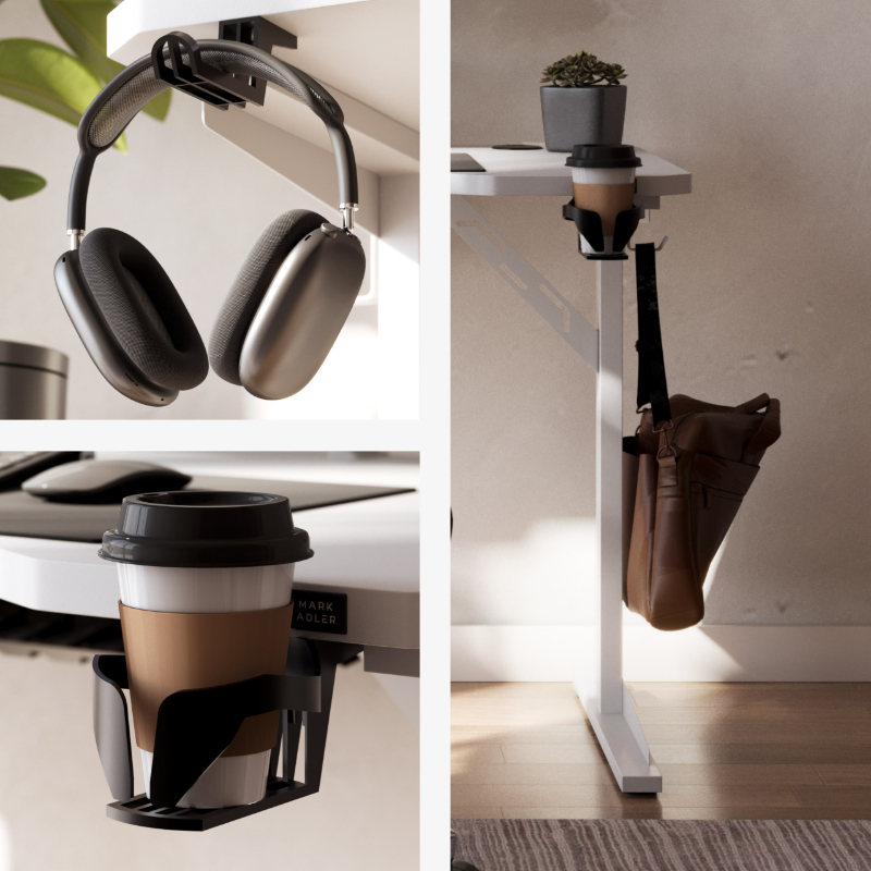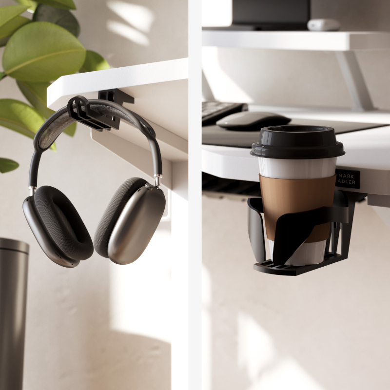 Dodatna oprema: Sto dolazi sa praktičnim držačem za čaše/flaše i kukama za slušalice i torbu/ranac, čime radna površina ostaje potpuno čista i prohodna.