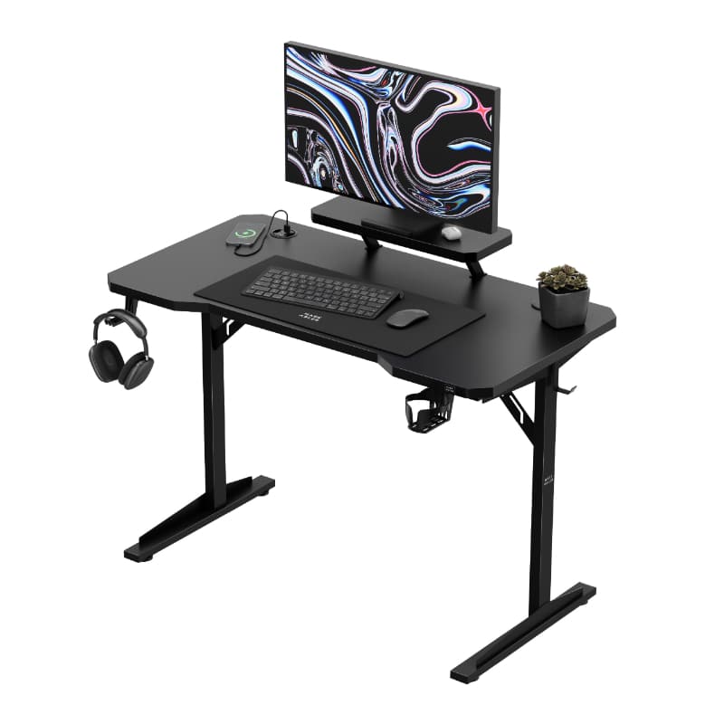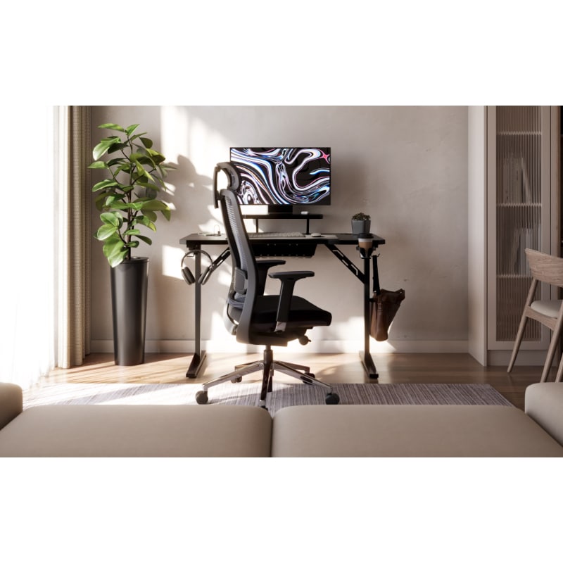 Mark Adler Leader 5.1 je moderan i funkcionalan kompjuterski sto širine 115 cm, dizajniran za maksimalnu organizaciju radnog prostora. Odlikuje ga minimalistički crni dizajn, ugrađena polica za monitor i dodatna oprema poput USB punjača i držača za periferiju, što ga čini idealnim za kućnu kancelariju ili učenje.