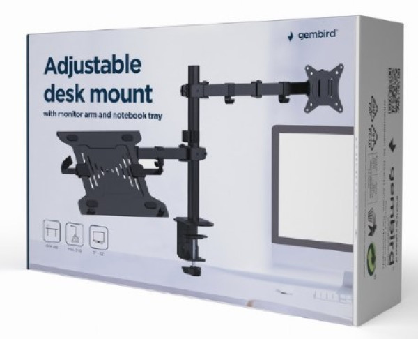 MA-DA-03 Gembird Podesivi stoni drzac za monitor tilt, 17-32 max.9kg + nosac za laptop