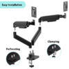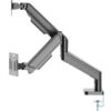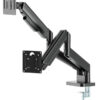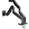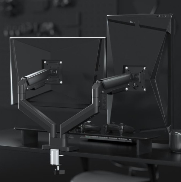 Savršeno pozicionirajte svoj ekran Lagan i nagibni dizajn Nosač za monitor sa dvostrukim držačima za monitor. Ruke se rotiraju, izvlače i uvlače, naginju za promenu ugla čitanja i omogucavaju rotiranje ekrana iz pejzažnog u portretni režim, itd. Omogucava lako ergonomsko pozicioniranje za smanjeno naprezanje Radi sa skoro svim LCD monitorima (max. 32″) Izdržljive podesive gasne opruge pogodne za monitore do 10 kg Jaka stona stezaljka za lako i sigurno fiksiranje na vašem stolu. Odvojiva VESA ploča omogucava jednostavnu instalaciju. Ugrađeno upravljanje kablovima za organizovan i uredan radni prostor. VESA kompatibilno, max. 100 x 100 mm Materijal: aluminijum, čelik Površinska završna obrada: praškasti premaz Boja: crna Odgovara veličini ekrana: 17″ ~ 32″ Nosivost: 2 ~ 10 kg (po ekranu) VESA kompatibilno: 75 x 75, 100 x 100 mm Opseg nagiba: +90° ~ -45° Opseg okretanja: +90° ~ -90° Rotacija ekrana: +180°~-180° Instalacija: Stezaljka za sto Maksimalna debljina stezaljke za sto: 10 ~ 50 mm Upravljanje kablovima: Da