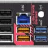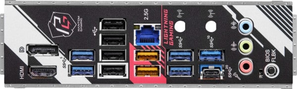 Eksterne veze1x HDMI 2.1 (iGPU), 1x DisplayPort 1.4 (iGPU), 1x USB-C 3.2 (20Gb/s), 1x USB-A 3.1 (10Gb/s), 6x USB-A 3.0 (5Gb/s), 4x USB-A 2.0 (480Mb/s), 1x 2,5GBase-T (Realtek RTL8125BG), 3x utičnica, 2x otvor za montažu za antensko povezivanje (RP-SMA)