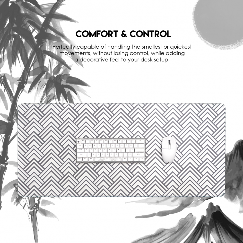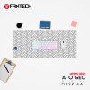 MP905 ATO Geo2 — XL desk mat (900×400×4 mm), geometrijski dezen, ultra‑glatka Speed površina, stabilna anti‑slip gumena baza, šiveni ivice i vodootporan finiš. Precizan i minimalistički ninja alat.