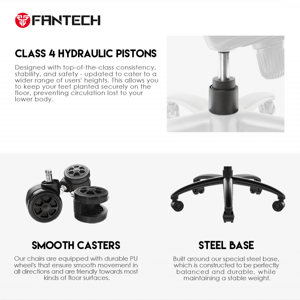 Ova stolica ne zanima tvoje rage momente – neće da zaškripi ili popusti kad bouncuješ u njoj posle lošeg pleja. Osnova je izgrađena oko čvrstog čeličnog okvira i gasnog lifta Klase 4, što ti garantuje maksimalnu stabilnost, trajnost i sigurnost. Elegantna siva završnica samo vizuelno potvrđuje da je ovo ozbiljna, heavy-duty oprema za tvoj prostor.