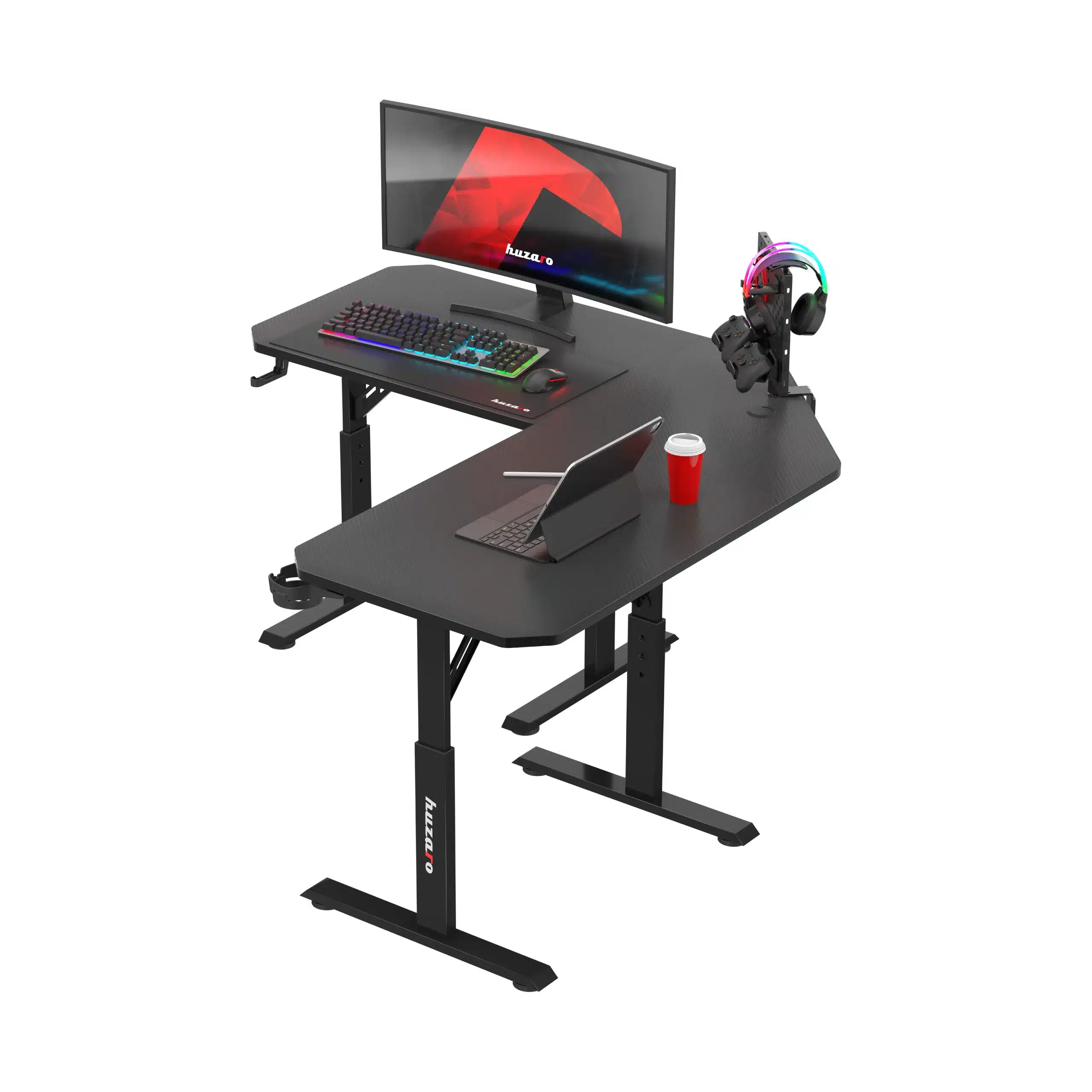 Ugaoni gejmerski sto sa podesivom visinom Huzaro Hero 7.3 crni