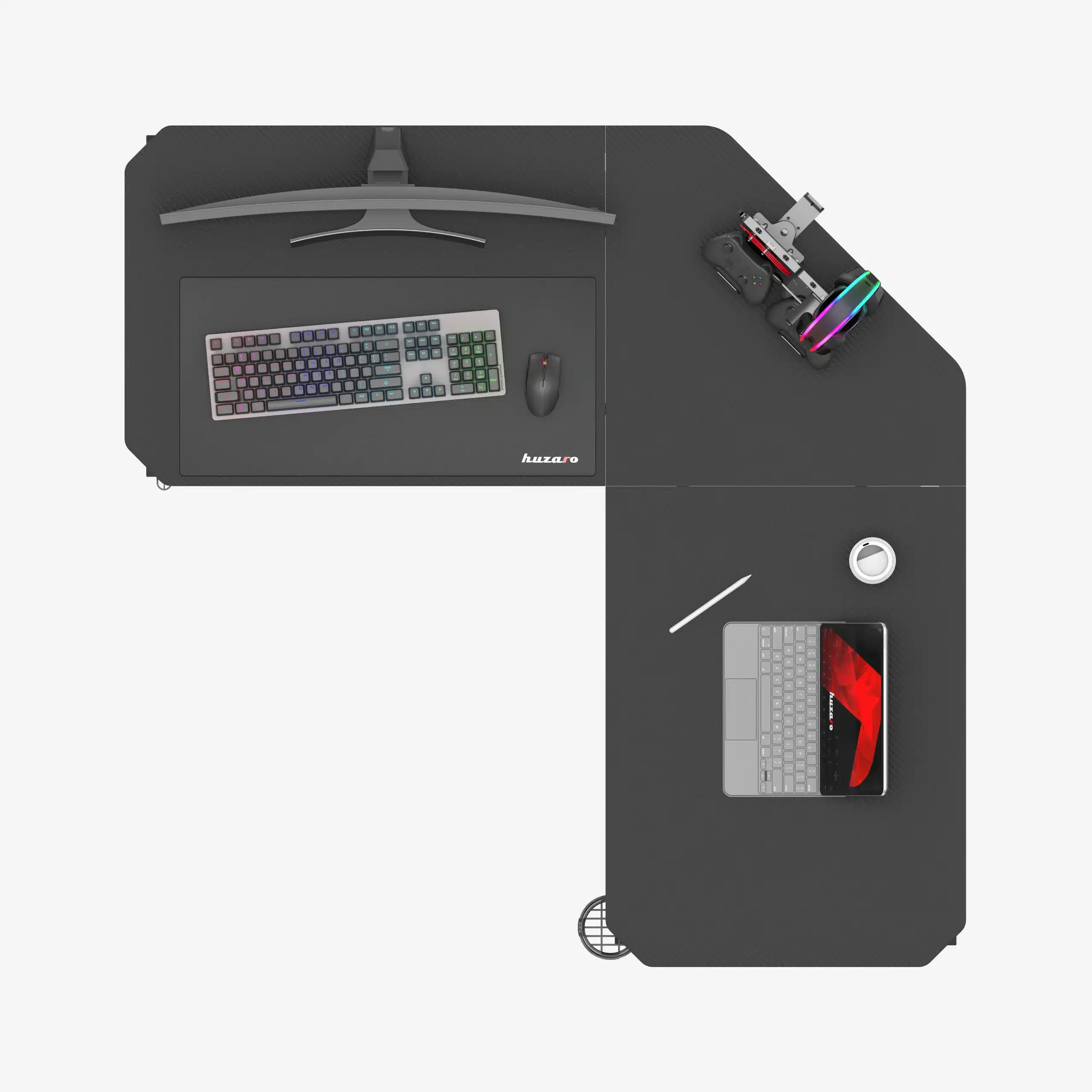 • L-dizajn za totalni „Map Control“ – Iskoristi svaki milimetar svog ugla i napravi setup gde ti je sve na dohvat ruke bez gužve.